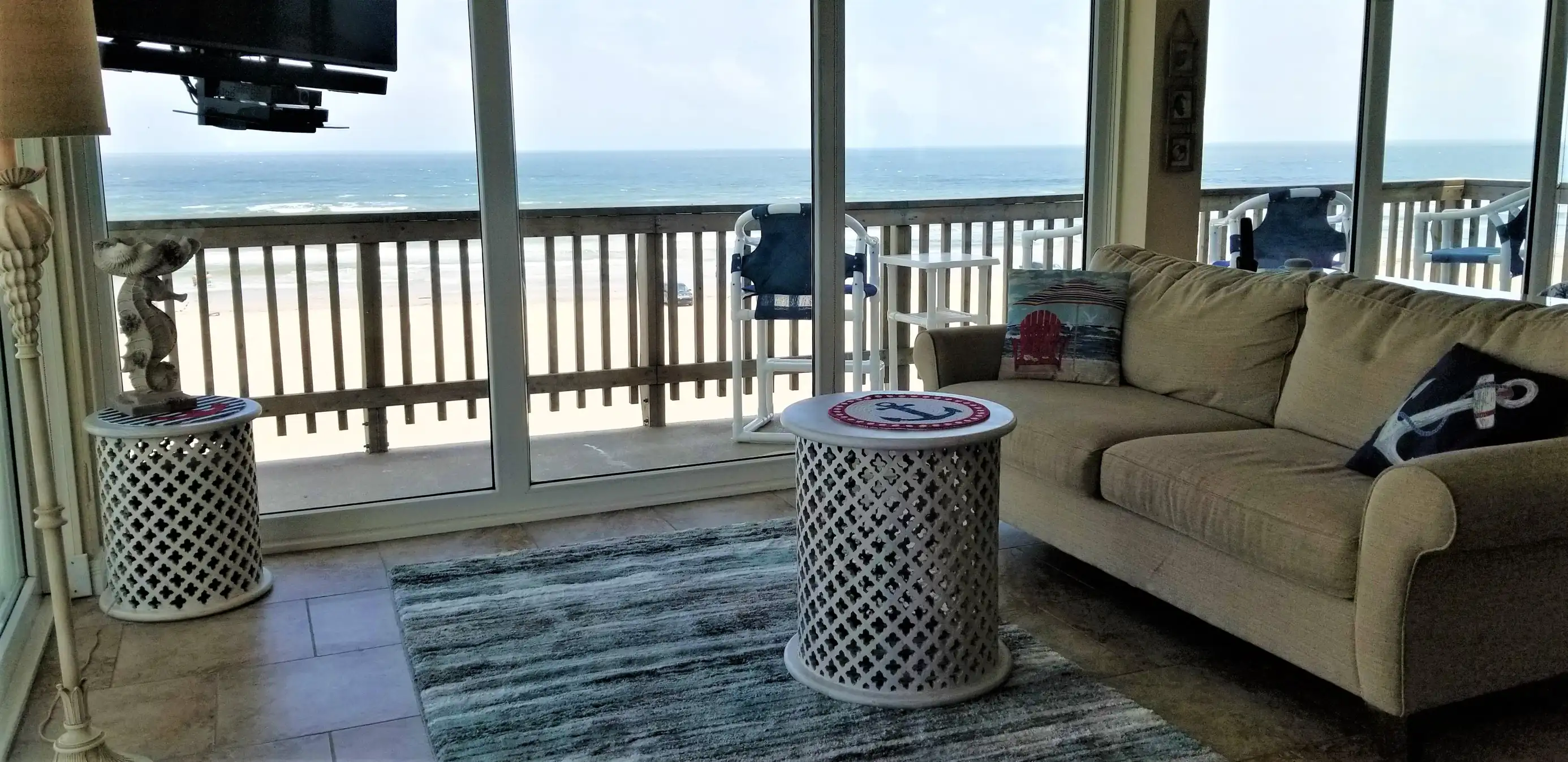 Welcome to "THE SEAHORSE", a one-of-a-kind Condo/Hotel unit located on the stunning Texas Gulf Coast. This luxurious 4th floor unit boasts a magnificent wrap-around patio with breathtaking panoramic views of the ocean, where you can bask in the glow of the sunrise and savor the sunsets' magnificent colors. With no sand dunes to block your view, the unit's floor-to-ceiling windows in the living area and master bedroom will transport you to a paradise unlike any other.