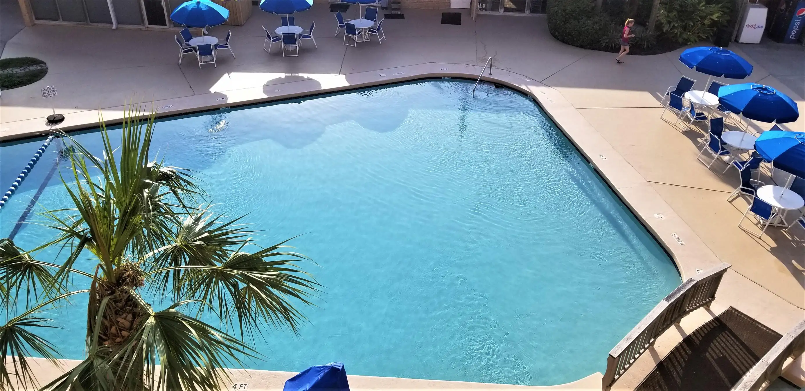 When you're not lounging in your luxurious unit, take a dip in the heated swimming pool or soak in the jacuzzi located in the beautifully landscaped courtyard. Adorned with tropical plants, vibrant flowers, and surrounded by the calls of island birds, this outdoor oasis is the perfect place to relax and unwind OR PLAY PICKLEBALL.